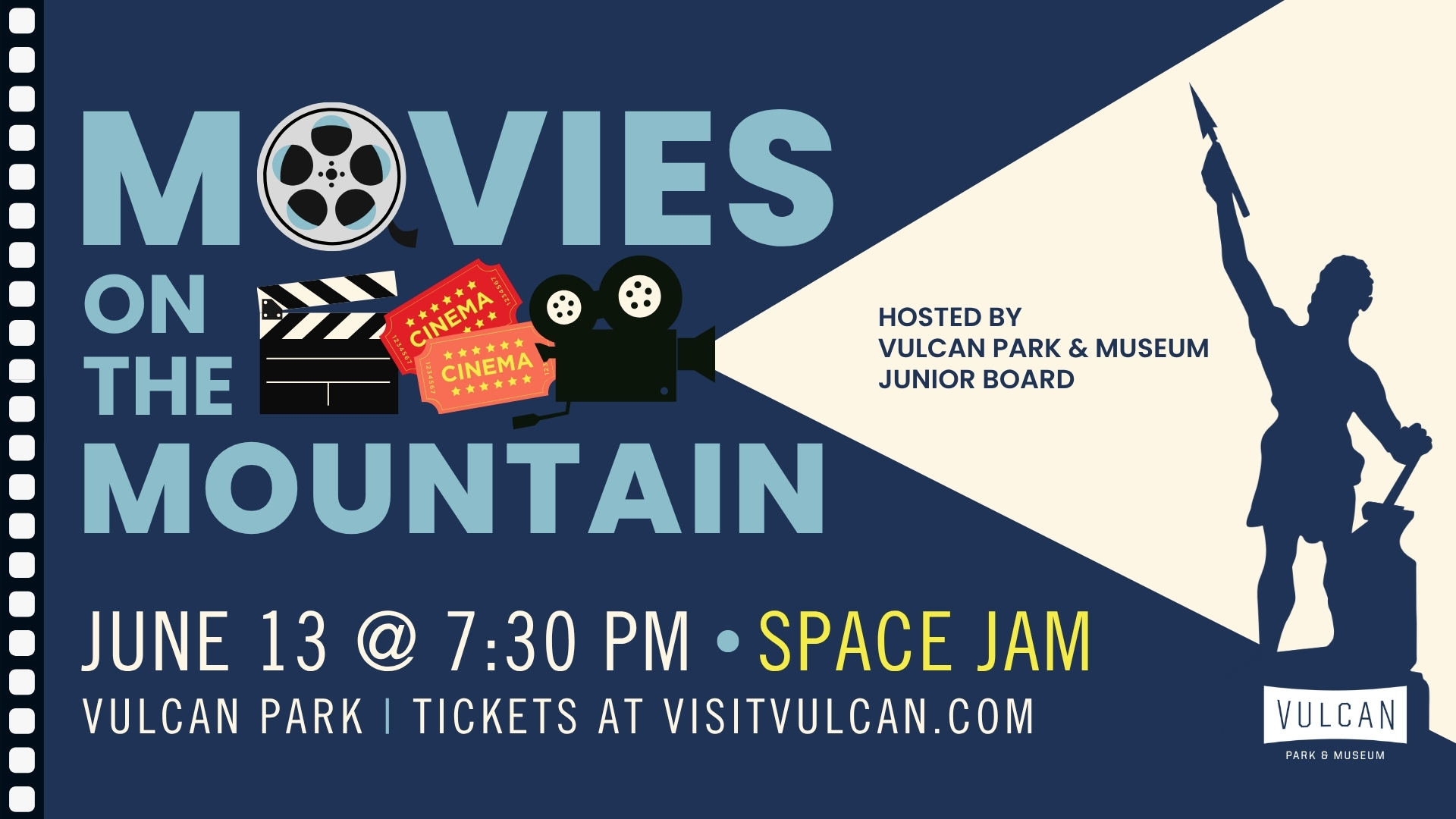 Experience the magic of cinema under the stars at Movies on the Mountain, an outdoor movie series at Vulcan Park & Museum. Hosted by the Junior Board, this three-part lineup showcases beloved classics—Madagascar, Space Jam, and Hotel Transylvania—in Birmingham’s most scenic setting!