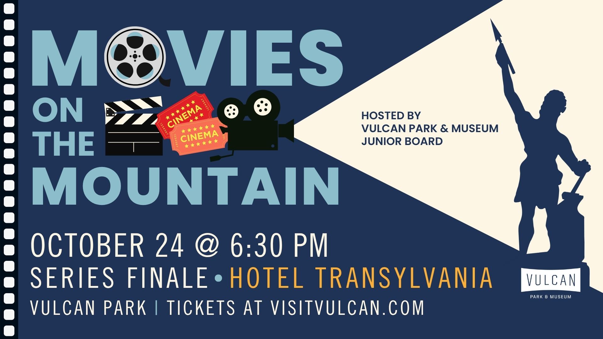 Experience the magic of cinema under the stars at Movies on the Mountain, an outdoor movie series at Vulcan Park & Museum. Hosted by the Junior Board, this three-part lineup showcases beloved classics—Madagascar, Space Jam, and Hotel Transylvania—in Birmingham’s most scenic setting!